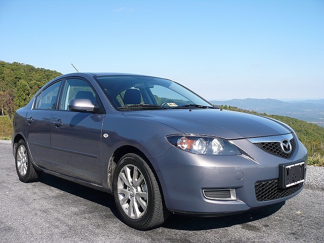 一番日本と違うのは「車は現品が基本」、「売ったらはいさようなら」というところですかね。あと手順にはないですが、車の基本品と思われる座席下のマットなどもしっかりオプションでお金を取られるところも違いますかね。 さて話を前に戻して、私の購入経緯に話を戻したいと思います。こちらに来る前にメンテナンスのこともあるから家から近いディーラーで購入するほうがいいというアドバイスを受けていましたので、家から徒歩圏のMAZDAに足を運んで見ました。 そうしたところ、想定していた「Mazda MAZDA3 i Sport」はマニュアル車は置いてあるものの、オートマはないとのこと。ワンランク上の「4-door i Touring Sedan 」ならあるとのことだったので、見てみたら色は赤色。うーん。いい色だけど目立つな〜。と思いながらとりあえず試乗までしてみました。次に価格交渉に入ったところ$18、000はするというではないですか。$15,000ぐらいで買えるのはないのかと聞いてみたところ、中古車や韓国製の車をお勧めすると言われてしまいました。ということで、このディーラーは色もいまいちだしちょっと予算オーバーかなと思いまたくると言い残して去りました。 次に車での移動になってしまうのですが、日本での下調べでは価格の一番安いToyota Yarisを見に行きました。そこではまず値段が勝負だろうということで、まず中にはいって値段を聞いてみました。そうしたら、なんと$15、500!!。$12,500ぐらいで買えるものと思っていたので、1.5リッターでこの値段。こりゃだめだと思い、次なるディーラに移動しました。 次は、MAZDA3は形は気に入っていたので、車で20分程度のMAZDA販売店に行ってみました。そこにも「Mazda MAZDA3 i Sport」は置いておらず、ワンランク上の「4-door i Touring Sedan 」しかありませんでした。でも街からちょっと離れていることもあり、いろいろな色やアメリカ人に人気のサンルーフ付の車がありました。その中から日本人には無難な灰色でサンルーフなしの車を選択して試乗。担当のアレックスに運転してもらい、特に問題はなさそうでした。あとは問題の値段です。アレックス曰く3年メンテナンスフリーで$18,000、そしてクレジットカードで$5000払えるよ。といってくれたので、少し値切って$17,500で2年メンテナンスフリー、クレジットカードで$5000ではどうか、と話したところそれでよいとのことだったので、契約に至りました。 でも、マネージャーの所に行ったらビックリ。クレジットカードは、$3000迄。2年間はメンテナンスフリーではなく、オイルチェンジのみフリーとのこと。話が違うぞと思いながらも、英語がしゃべることができないし、付き添っていただいている方に悪いと思いその条件で契約しました。 ■ 車の引き取り保険は電話で契約する旨を伝えて、FAXでやりとりを行って契約。そして購入日から5日以内に引き取りが条件だったので、5日目に引き取りに行ってきました。中は清掃されていて、小切手で支払いをすませて引き取り。あっさりしたものでした。下は購入した車(MAZDA3 日本名 アクセラ)の画像です。
